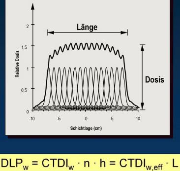Der CTDI entspricht der Energiedosis, die in einem angenommenen, rechteckigen Profil der vom Hersteller angegebenen Schichtdicke des CTs absorbiert worden wäre. Außerhalb der Schicht liegende Dosisanteile werden dabei zur Schichtdosis addiert.