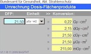 Achtung: Die Werte in der Bekanntmachung des BfS werden in den Einheiten cGy*cm² bzw. µGy*m² angegeben. Diese beiden Einheiten haben die gleiche Größe. Werden andere Einheiten benutzt und gemessen können diese mittels einer Umrechnungstabelle damit verglichen werden: