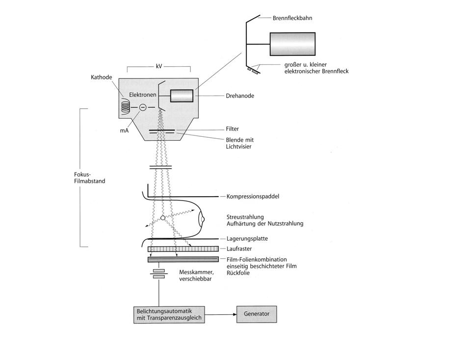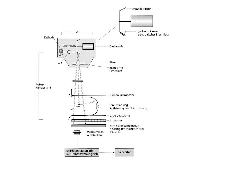 Trotz möglichst hohem Kontrast müssen z.T. sehr unterschiedliche Dichtebereiche (fettreiche Areale, geringe Brustdicke, röntgendichte masthopathische Brüste, thoraxwandnahe Areale mit großer Brustdicke, große Brüste) auf dem Mammographiebild beurteilbar sein.