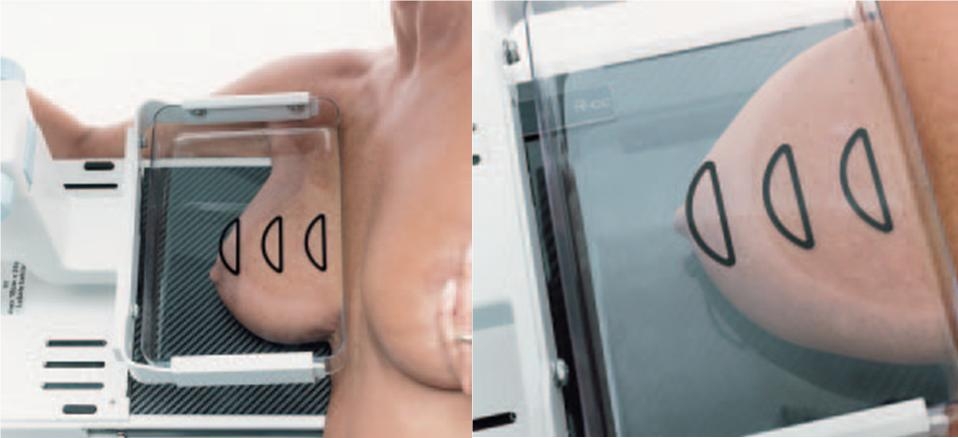 Sie erlaubt eine deutliche Dosisreduktion durch die Verringerung der zu durchstrahlenden Brustdicke.