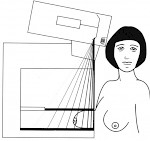 Mit einer Kompressionseinrichtung wird die unterschiedliche Dicke des konisch geformten Brustdrüsenkörpers komprimiert und ausgeglichen, sowie das Fettgewebe zwischen die bindegewebsreichen Strukturen des Drüsenkörpers gepresst, das Drüsengewebe aufgespreizt und dadurch eine gute Darstellung aller Strukturen erzielt. Somit ist die Kompression der Brust einer der wichtigsten Voraussetzungen für eine qualitativ hochwertige Mammographie