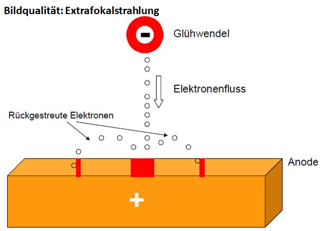 Hierbei handelt es sich um energieärmere Röntgenstrahlung, die durch rückgestreute oder vagabundierende Elektronen außerhalb des eigentlichen Brennflecks entsteht. Der Anteil dieser Extrafokalstrahlung beträgt zwischen 4% und 10% der Gesamtstrahlung und hat einen relativ geringen Einfluss auf die Bildgüte, da sie innerhalb des achsnahen Nutzstrahlkegels praktisch nicht zu erkennen ist.