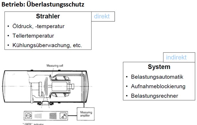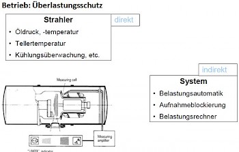 Die direkte Messwerterfassung erfolgt unmittelbar am Strahler wie z.B. Öldruck, Öltemperatur, Kühlungsüberwachung, Tellertemperatur. Letztere wird beim System LOADIX™ mittels Sensor, der die Helligkeit des Anodentellers bestimmt, gemessen.