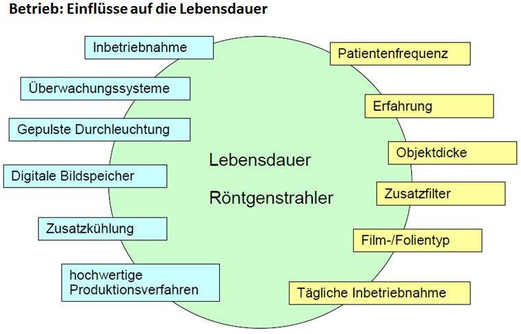 Erfahrung: Planung des Untersuchungsablaufes beeinflusst die Aufheizzyklen der Röntgenröhre. Oder: eine lange Vorbereitungszeit bis Aufnahmeauslösung erhöht den Wendelverschleiß. Oder: Aufnahmen müssen in kurzer Zeit wiederholt werden infolge von