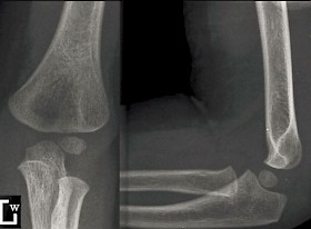 Falls dennoch geröntgt wird, kann es bereits beim Einstellen der a.p.-Aufnahme zu einer Reposition kommen. Denn für eine exakte frontale (a.p.) Aufnahme des Ellenbogens muss der Unterarm in voller Streckung und voller Auswärtsdrehung (Supination) gehalten werden.