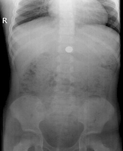 Anamnese: Beim Spielen Metallkugel verschluckt! - Ereignis liegt etwa drei Stunden zurück!