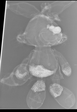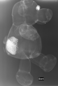 Kinder kommen oft sehr ängstlich mit Kuscheltieren oder Puppen zum Röntgen. Um den Kindern diese Angst zu nehmen, kann man vor deren neugierigen Augen, zuerst die kuscheligen Begleiter unter die Röhre legen.