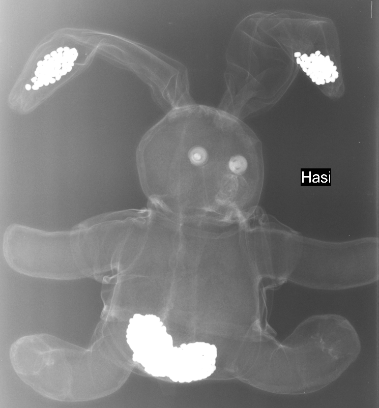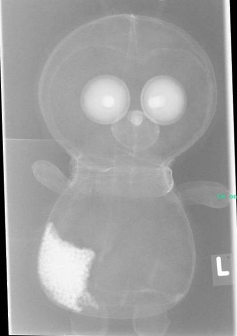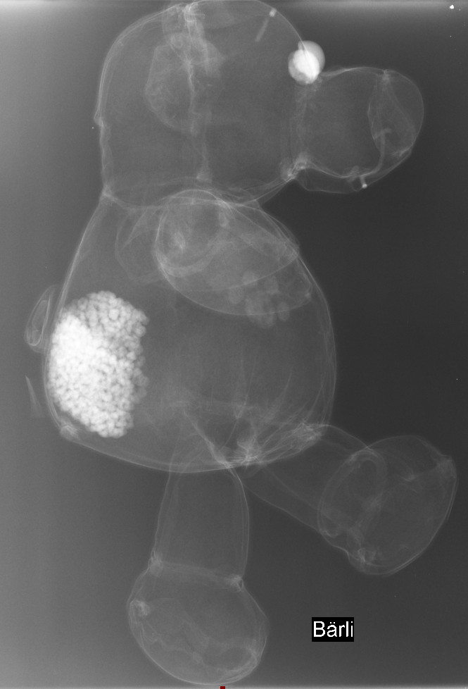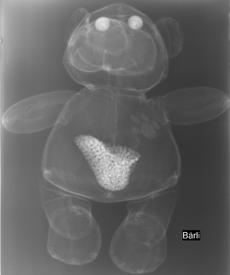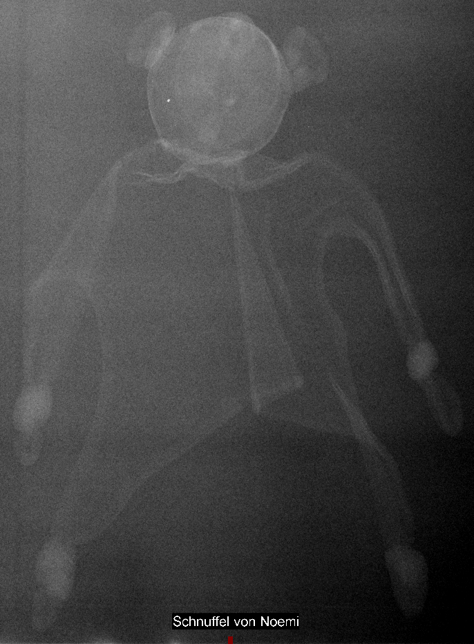 Kinder kommen oft sehr ängstlich mit Kuscheltieren oder Puppen zum Röntgen. Um den Kindern diese Angst zu nehmen, kann man vor deren neugierigen Augen, zuerst die kuscheligen Begleiter unter die Röhre legen.