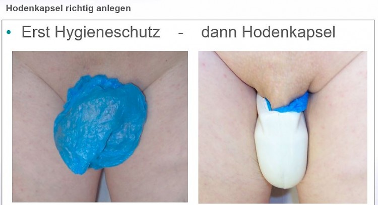 Und nur weil dieser Einwand öfters fällt: Zwar weigern oder zieren sich manchmal Patienten die Hodenkapsel anzulegen – vor allem pubertierende Knaben – aber mit wenigen begründenden und vernünftigen Worten kann man nahezu alle vom Sinn und der Notwendigkeit des richtigen Anlegens der Hodenkapsel überzeugen.