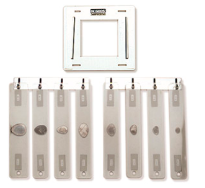 - Acht Plexiglasscheiben mit Bleiformen 2 mm Pb verschiedener Größen. Diese werden mittels Magneten an der Metallplatte angebracht.
