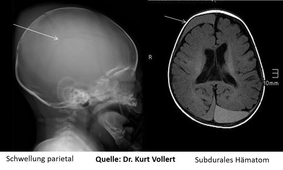 Eine der häufigsten Folgen nach Misshandlung ist das Schütteltrauma, das entsteht, wenn das Kind am Brustkorb gehalten und massiv geschüttelt wird, so dass der Kopf heftigen Schleuderbewegungen ausgesetzt ist. Die Folge sind oft Subduralhämatome, Blutergüsse unter der Hirnhaut, die nur mit bildgebenden Verfahren zu erkennen sind.
