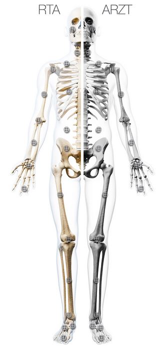 Während den MTRA's u. a. Informationen zu Lagerung, Röhrenspannung und Kassettenformat zur Verfügung stehen, erhält der Arzt wichtige Informationen zur Röntgenanatomie, Referenzdaten zum menschlichen Skelett und Hinweise bzw. Links zu häufigen traumatologischen und orthopädischen Krankheitsbildern.