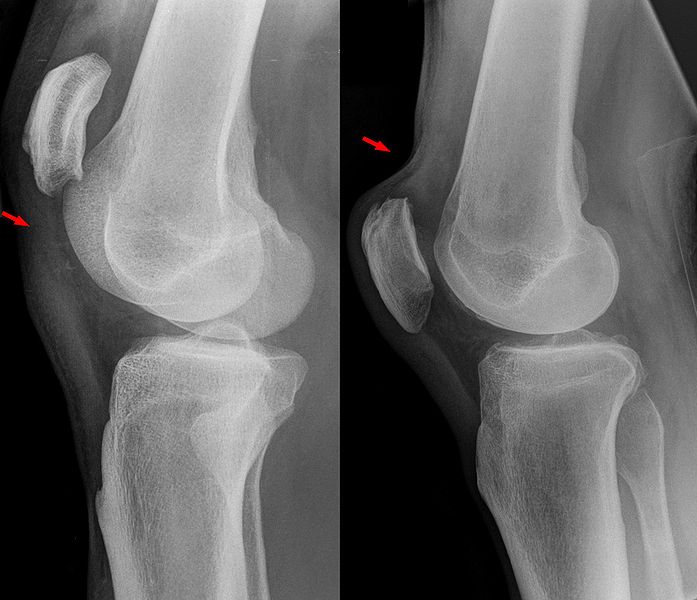 2. Rechtes Bild als Gegensatz: Riss der Quadrizeps-Sehne: