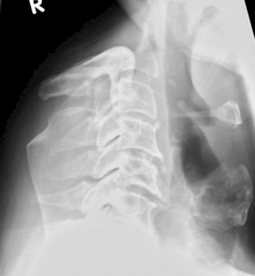 Röntgen HWS seitl. "kopflos" - So könnte die Anforderung für diese Aufnahme der HWS seitlich gelautet haben.