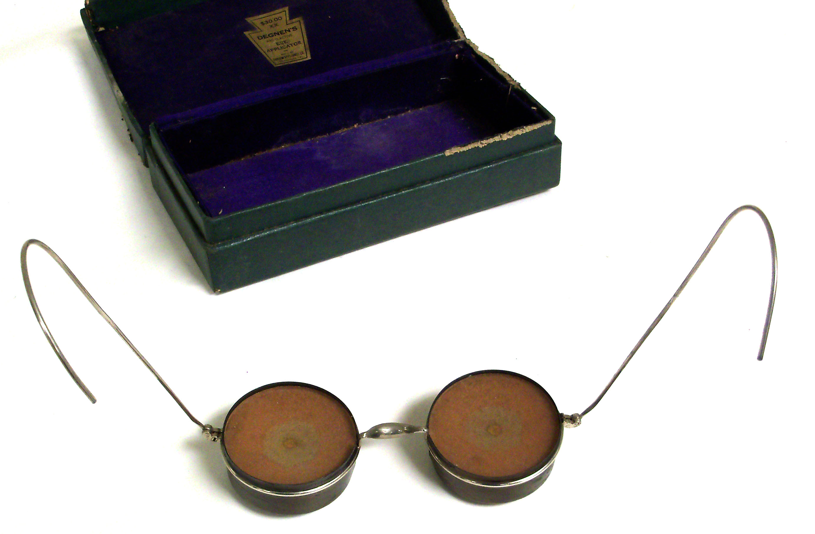 Degnen's Radio-Active Eye Applicator (1915-1930) Der coole Applikator in Brillenform wurde entsprechend der Radium226-Aktivität in drei Stärken angeboten: (Single-X), (Double-X) und (Triple-X).
