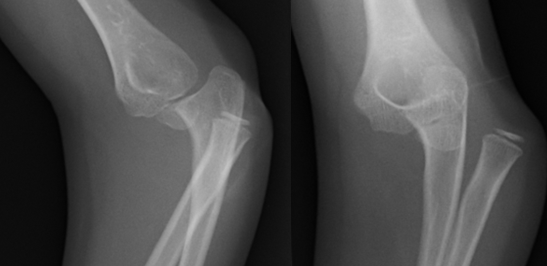 Ellenbogenluxation mit Sprengung des proximalen radio-ulnaren Gelenkes bei einem 7-jährigen Mädchen.