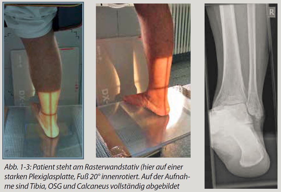 - Zentrahlstrahl auf das obere Sprunggelenk (in Hohe der Achillessehne).