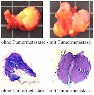 - Das Restgewebe des Schnellschnittverfahrens und getrennt davon auch das vollständige, übrige SLN-Gewebe werden nach üblicher Formaldehyd-Fixierung im Einbettungsverfahren und in Stufenschnitten aufgearbeitet,an denen erst die endgültige histomorphologische Begutachtung erfolgt.