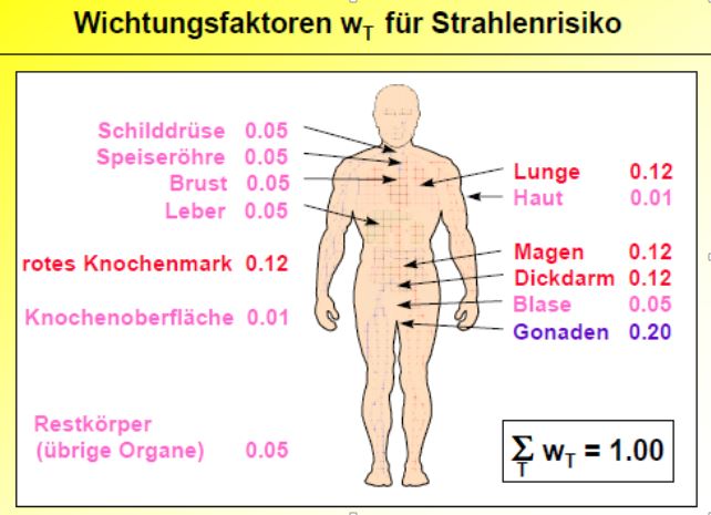 - wR: Strahlungswichtungsfaktor für die unterschiedlichen Strahlenarten