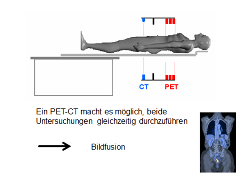 dabei ist die PET ist ein nuklearmedizinisches Untersuchungsverfahren, die CT ein radiologisches Untersuchungsverfahren.