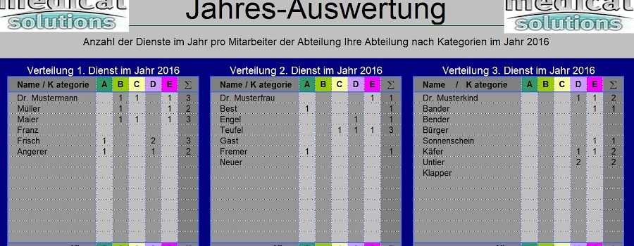 Dienstplan Bereitschaftsdienste mit Auswertungen